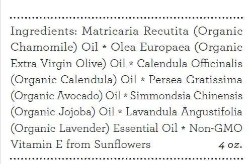 CALMING BABY OIL FOR BABIES - Created with sensitive skin in mind; this non-greasy oil; made with organic lavender and organic chamomile; can be massaged onto baby’s skin to help relax and prepare your baby for nap or bedtime; so you can relax too.